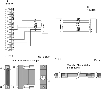 The CDR2512-I is a RJ12 to DB25 male cable that connects either the RTU8191 or 8171 to a PC.